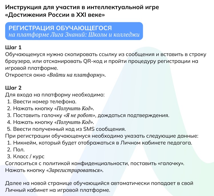 Примите участие в интеллектуальной игре «Достижения России в XXI веке» (сроки регистрации: с 25 января по 2 февраля 2024 года).