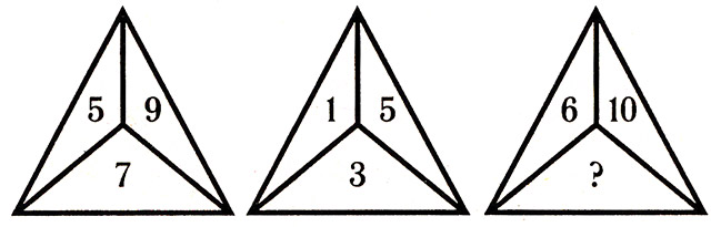 Ответ: 8, так как в предыдущих треугольниках нижнее число больше числа слева на 2 и меньше числа справа на 2.